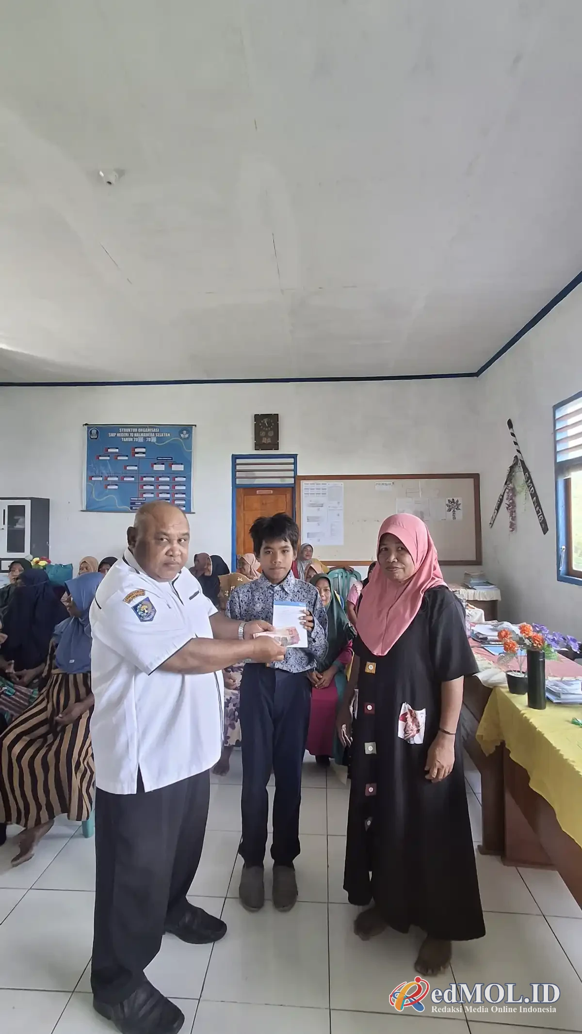 PIP diserahkan langsung oleh Kepala Sekolah kepada perwakilan wali murid dan disaksikan langsung oleh Kepala Desa serta dewan guru kurikulum, Darma Kadi, S.Pd, Nurna Amir, Idar M. Djumati, Asra Arifin, S.Pd, Nasra Halid, S.Kom, Fahman Wahab, S.Pd.
