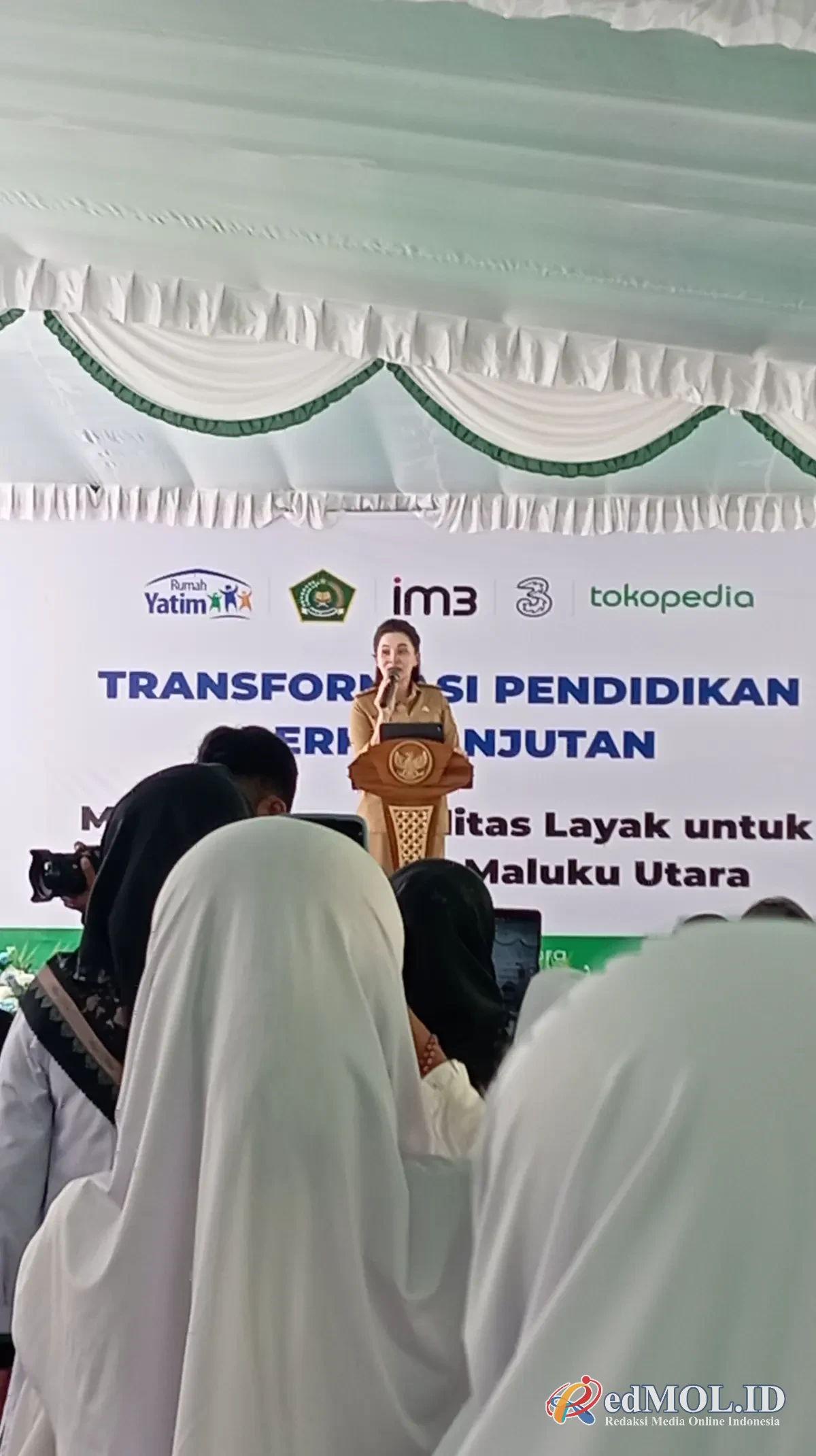 Kegiatan tersebut turut dihadiri sejumlah perwakilan mitra strategis dan instansi terkait, di antaranya Rudi Dalimunthe selaku Senior Vice President Tokopedia Digital Goods, Mutia Murwanti Senior Vice President IOH Digital Distribution, Nur Uyun Analis Kebijakan Kementerian Agama RI, Mahmud Zulkiram Kabid Bimas Islam Kanwil Kemenag Maluku Utara, serta jajaran manajemen IOH wilayah Kalisumapa, para kepala sekolah, guru, dan siswa.