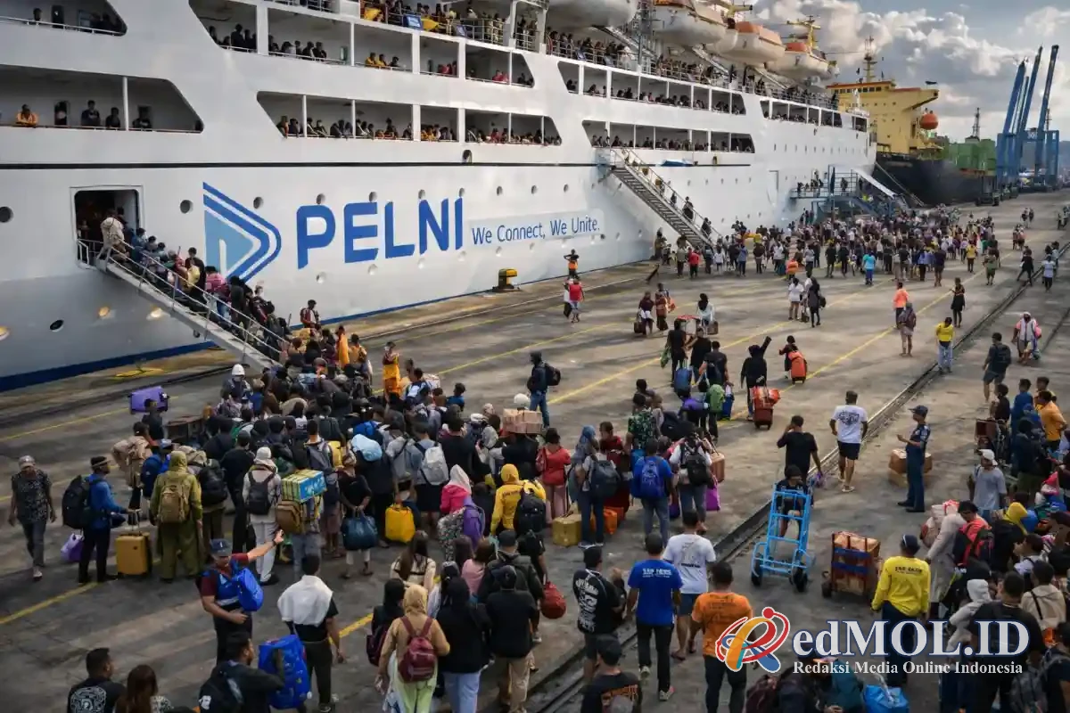 Kapal milik PT Pelni tersebut menjadi pilihan utama warga yang hendak pulang ke kampung halaman masing-masing. Sejak pagi hari antrean panjang terlihat di ruang tunggu dan area pemeriksaan tiket pelabuhan setempat.